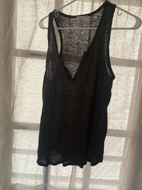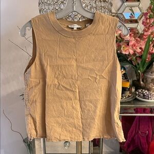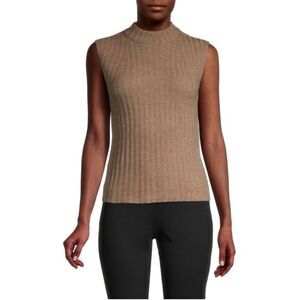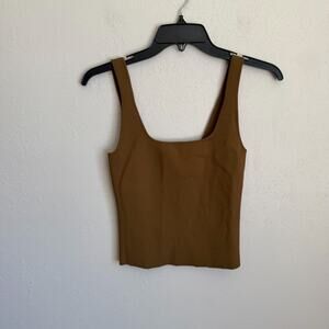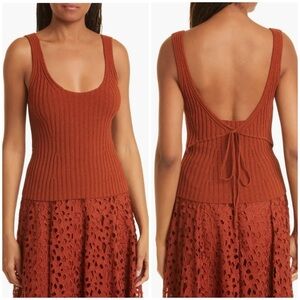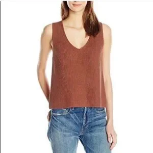 Vince Ribbed Cotton Knit V Neck Tank in Burnt Orange Size M
