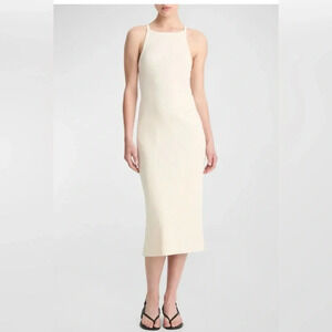 Vince Ribbed High-Neck Midi Tank Dress size XXS Color: FLAXEN $245.00