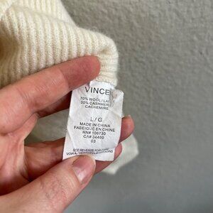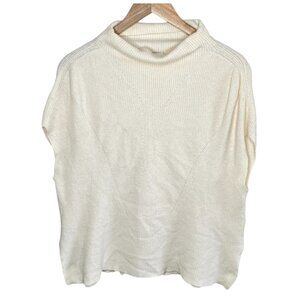 Vince Ribbed Ivory Wool Cashmere Blend Sleeveless Mock Neck Sweater Large