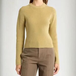 Vince Ribbed Knit Sweater Crew Neck /green Thyme Cotton Blend XS New