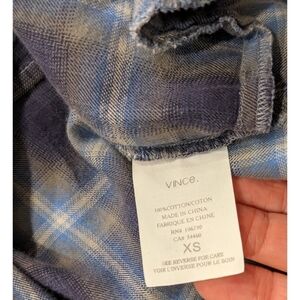 Excellent pre-owned condition. Vince Roll Tab Sleeve cowl neck plaid tunic top. Pockets. 100% cotton. Size XS
