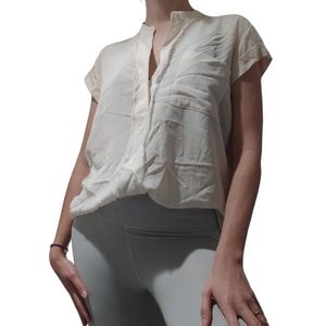 Vince S ivory silk short sleeve blouse with pocket and 2 buttons