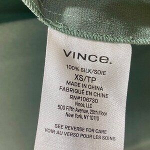 Vince SHAPED COLLAR SILK BLOUSE 100% Silk Satin, Lt Patina, Size XS, New w/Tag