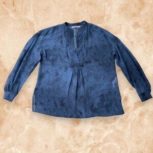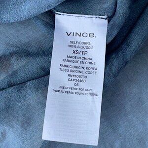 Vince SIZE XS Oversized Fog Blue 100% Silk Washable Sheer Tunic Blouse