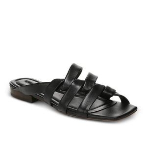 Vince Sandal Slide Zayna Black Leather Flat Square Strappy Slip On 6.5M $275