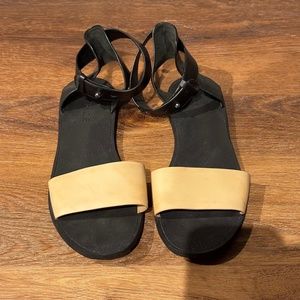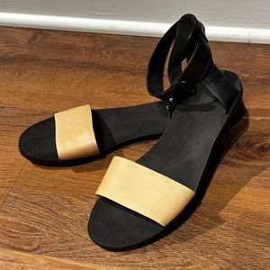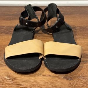 Vince Sawyer Sz EU38 US7.5 Flats Sandals Two Tone Black Tan Ankle Strap Leather