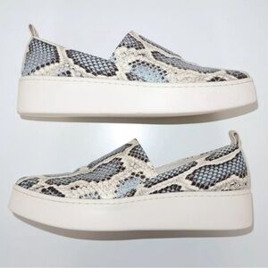 Vince Saxon 2 Sneaker Flat Womens 6.5M 36.5 Snake Blue Gray Cream Slip-On Leather