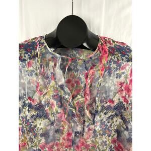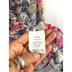 Vince Scoop Neck Tunic Blouse in Floral Silk LARGE
