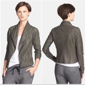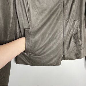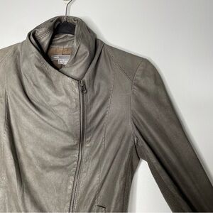 Vince Scuba Leather Moto Jacket Asymmetrical Zip Up In Dark Gray Size XS