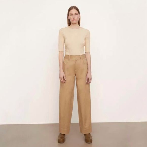 Vince Seam Front Trouser High Rise Wide Leg Cotton Pant Neutral Camel 14 Large