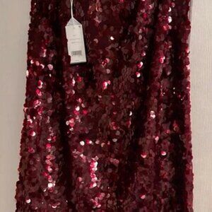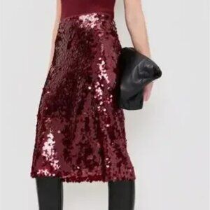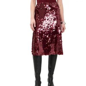 Vince Sequined Midi Skirt Lucite Paillettes Ruby Ink