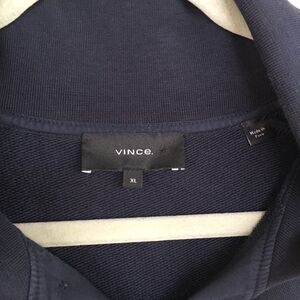 Vince Pullover Men XL Henley Sweatshirt 3 Button Collar Navy Long Sleeve Ribbed Trim