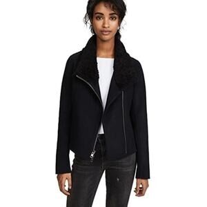 Vince Shearling Collar Double Faced Wool Jacket Size Small Motorcycle Rocker