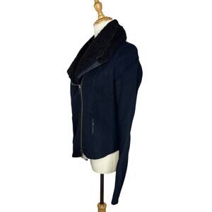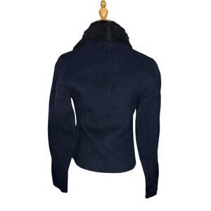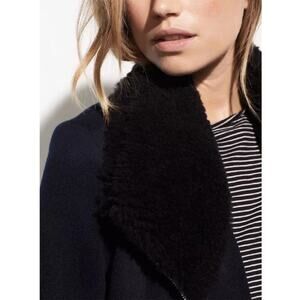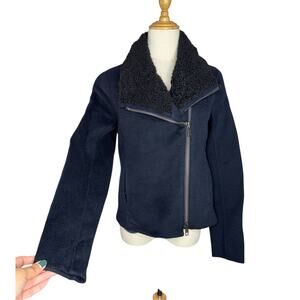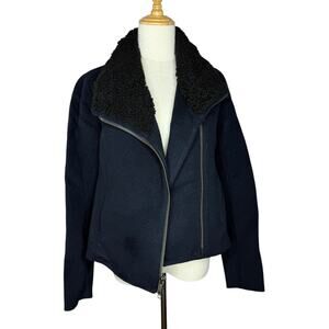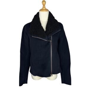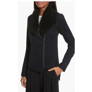 Vince Shearling Collar Double Faced Wool Jacket Motorcycle Rocker Dark Blue and Black