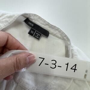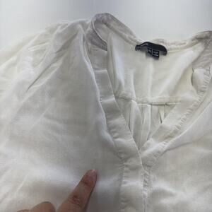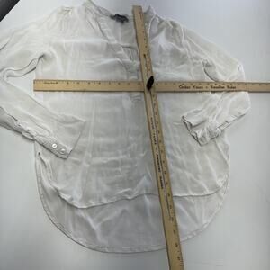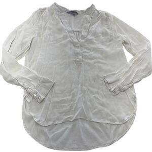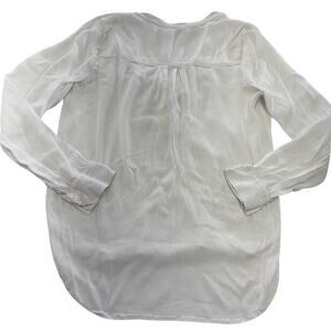 Vince Shirt Womens 10 White Semi Sheer V-Neck Popover Long Sleeve Cuff Blouse