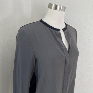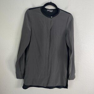 Vince Shirt Womens 6 Gray Black 100% Silk Long Sleeve Tunic Blouse Top High Low