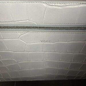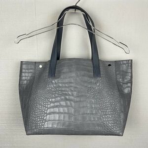Vince Signature V Croc Embossed Leather Tote Bag Gray Blue Large Snap Shoulder