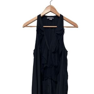 Vince Sleeveless Silk Blend V-Neck Ruffle Handkerchief Hem Button Down Blouse Black Medium