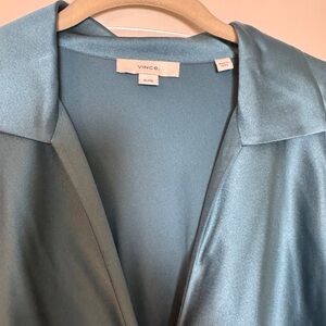 Vince silk blouse in a beautiful peacock blue waltz. Worn once, perfect condition. If I could find this in my size now I’d snap it up! 25” pit to