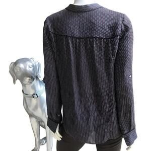 Vince Silk Button Down Black White Red Long Sleeve Shirt Women's Size S