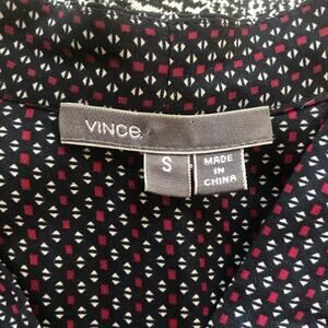 Vince Silk Button Down Black White Red Long Sleeve Shirt Women's Size S. Measurements: bust: 20, length in front: 22.5, length in back: 25