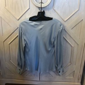 Long sleeve blouse is cut on the bias with an elegantly draped neck.