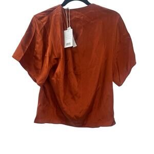 Vince Silk Flutter Sleeve Draped Neck Blouse Short Sleeve Rust Amber XS/ XXS NWT