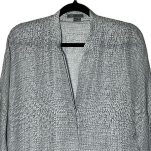 Vince Silk Gray Cable Knit Patterned Off-Shoulder Pullover Blouse with V-Neck, M