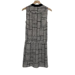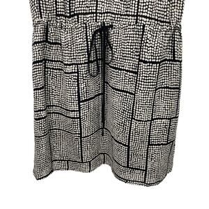 Keywords: geo pattern patterned printed preppy boho monochromatic retro minimal minimalist breezy lightweight sundress vacation travel summer spring flowy casual everyday hot weather neutral polkadot vneck tie waist comfortable tank dress