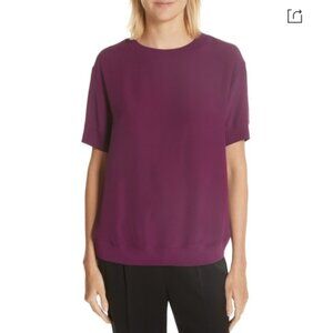 Vince | Silk Short Sleeve Rib Trim Blouse in Mulberry Purple Luxury | Size XS*