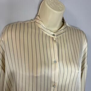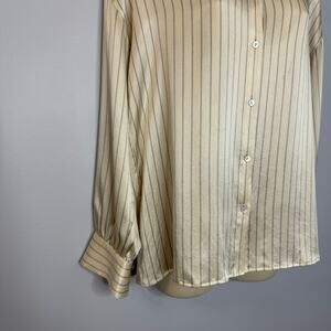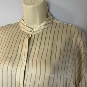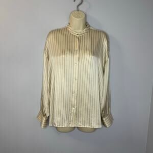 Vince Silk Striped Cream Long Sleeve Shirt Elegant Minimalist Women's S