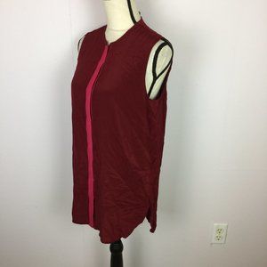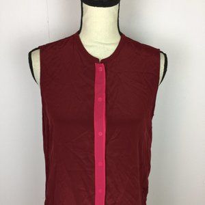 Vince Silk Top Blouse Size M (100% SILK) Womans Red Pink Button Front Sleeveless
