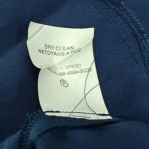 Vince tunic shift dress in women's size 2. Blue silk/spandex has a little bit of stretch. V-neckline. Long sleeves have button cuffs. Side seam pockets. Shirt tail hem. The buttons on the cuffs have peeling - see photos.