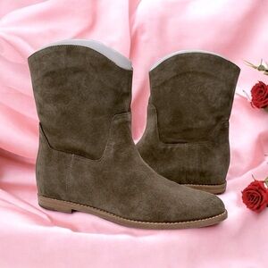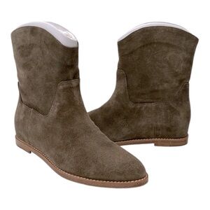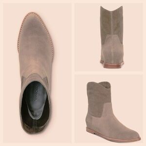 Step out in style with these chic brown suede ankle boots. Perfect for any occasion, they offer both comfort and elegance. Vince Sinclair Western Ankle Boot In Flint NWB size 6 M fits size 5.5