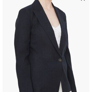 Vince Single Breasted Linen-Blend Blazer in Navy (Marina) Size 12