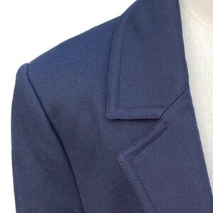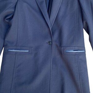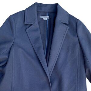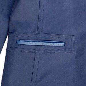 Vince Single Breasted Long Trench Coat Blue Lamb Leather Trim Classic Quiet Luxury. Please note there are some marks on the sleeve. See last photo.