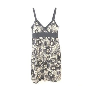 Vince Women's Size 4 Cotton Silk Gray Beige Floral Empire Waist Dress
