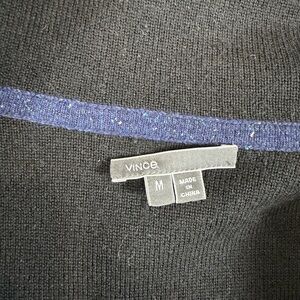 Vince Size Medium Wool Cashmere Blend Navy and Black Open Cardigan With Leather