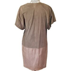 Vince Size S Brown Short Sleeve Leather V-Neck Shift Dress Pockets Lightweight