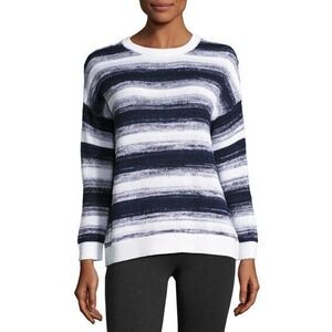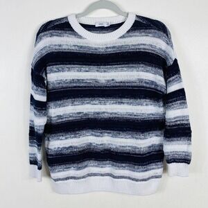 Vince Size XS Ombre Stripe Pullover Crewneck Sweater Navy Blue White 100% Cotton