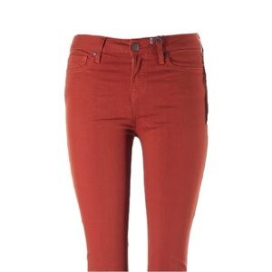 Vince jeans, designer denim, rust pants, fall color jeans, stretch skinny jeans, mid rise, soft tencel blend, women’s size 30, autumn rust jeans, burnt orange denim