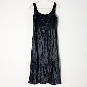 Vince Sleeveless Satin Slip Midi Dress in Black Scoop Neck size 6