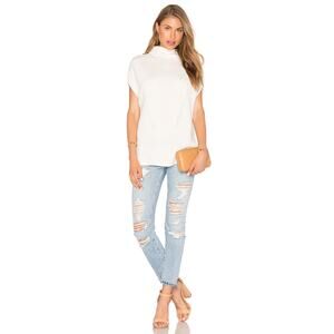 Vince Sleeveless Turtleneck Sweater Vest in Off White. Size XS / Extra Small. Features turtleneck, cap sleeves, ribbed knit fabric, and side slits. Style V361776551. 70% Wool, 30% Cashmere. Excellent condition, no flaws.