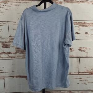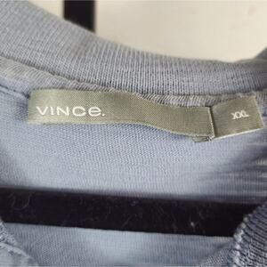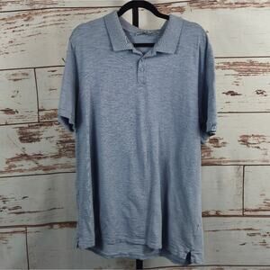 Vince men's short sleeve slub polo shirt in blue. There is a small hole near the shoulder seam as pictured. Otherwise good preowned condition. Size XXL
