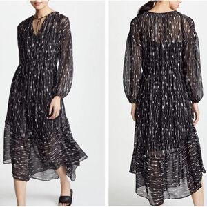 Vince Smocked Chiffon Abstract Silk Midi Dress sz Small Boho Romantic Goth Sheer