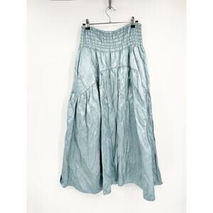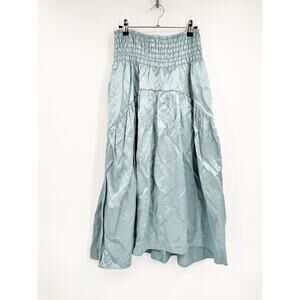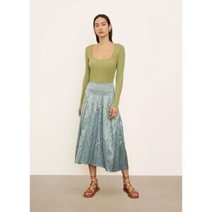 Vince Smocked Tiered Metal Satin Midi Length Pull-On A-Line Skirt Size Medium