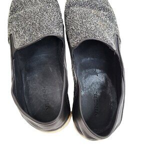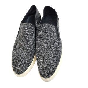 Vince Sneaker Slide Shoe Gray Black White Leather Heel Tweed Slip on