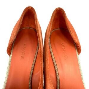 🐈 Vince Sonora Orange Suede Wedge Sandal Size 8 Espadrille Platform Open Toe D'Orsay Asymmetrical Trim