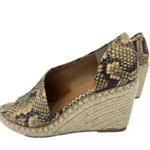 Vince Sonora Snakeskin Espadrille Wedge Sandals 7.5M Peep Toe Jute Heels Spain