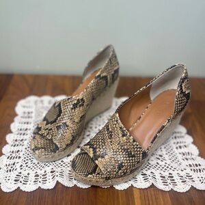 Vince Sonora Tan Snakeskin Leather Espadrille D'Orsay Peep Toe Wedges 8